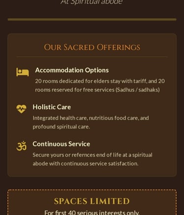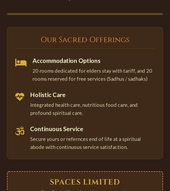 Projects nurturing Eldersly sadhus, sadhaks support